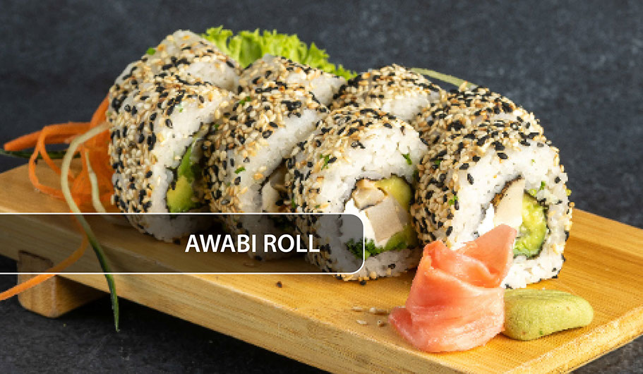 Salmón, Kaikama, Masago, Palta, Queso crema, Envuelto en Pepino.