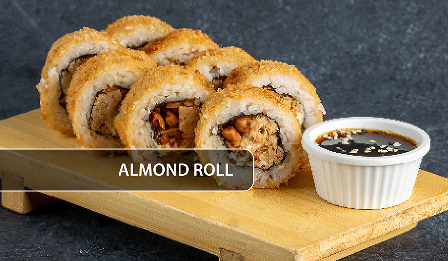 Pollo teriyaki, queso crema, almendras, apanado en panko.